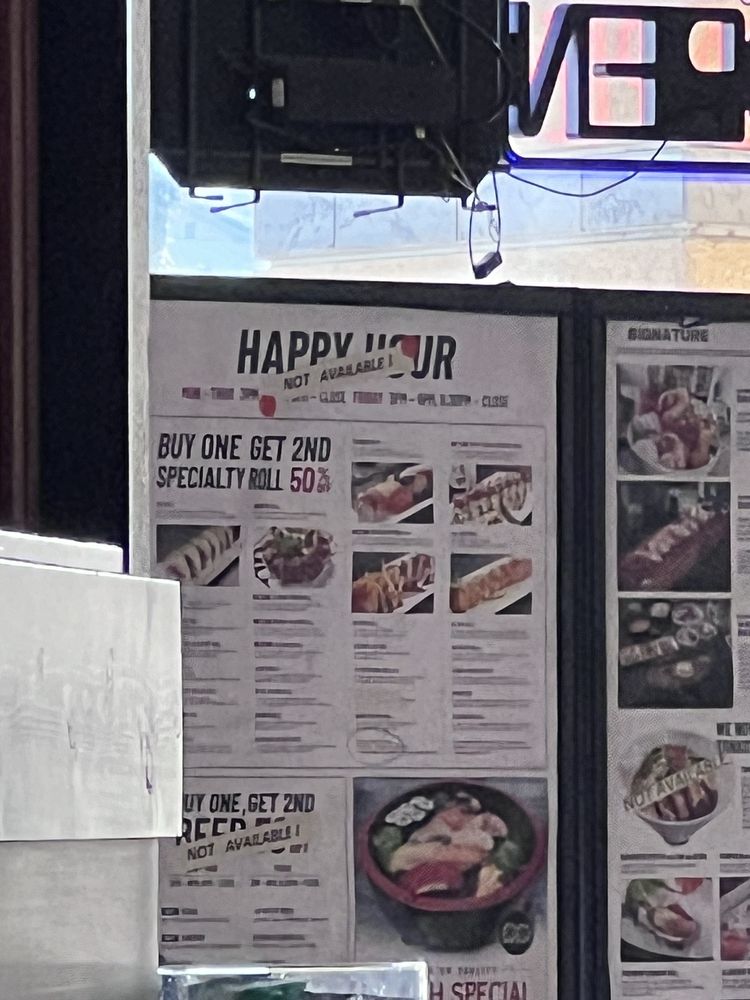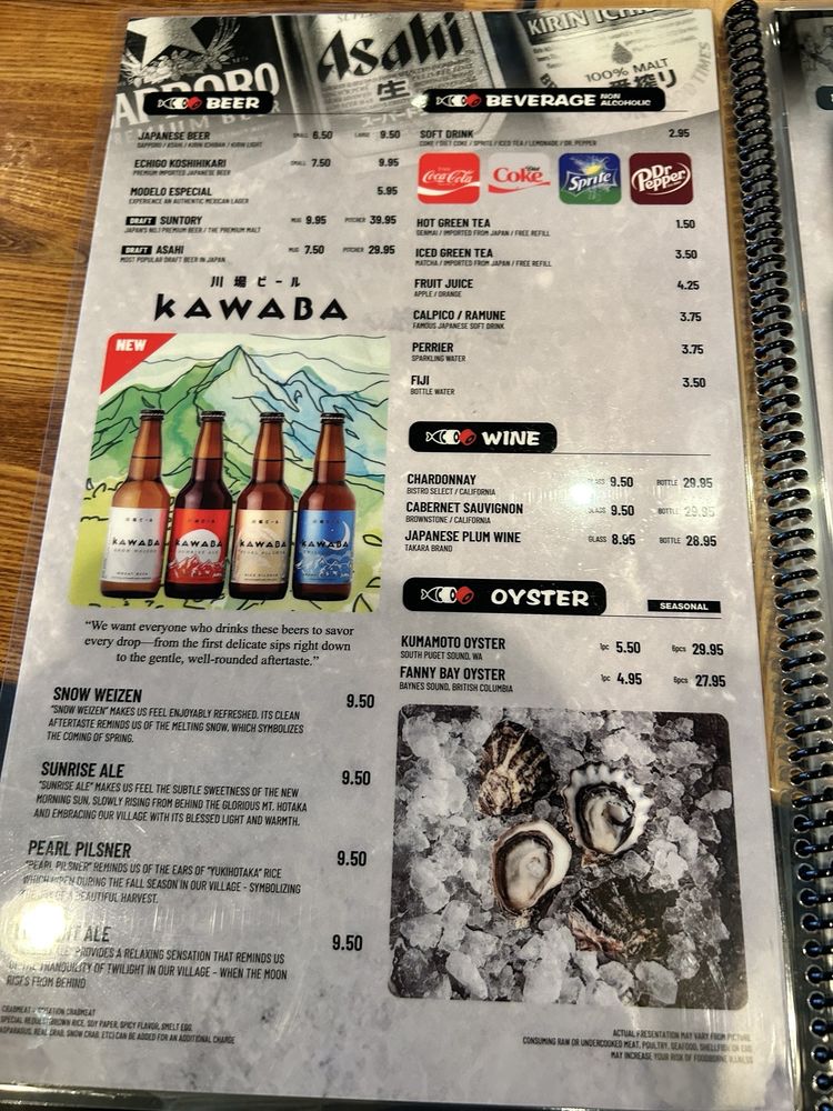 asahi roll, las vegas roll, fiesta roll, rainbow roll, crunch spider roll, hungry monster roll, salmon lover roll, spicy dragon roll